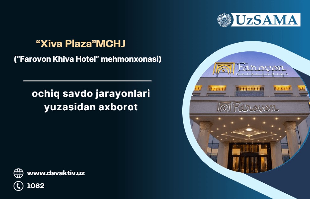 “Xiva Plaza” МЧЖнинг очиқ савдо жараёнлари юзасидан ахборот