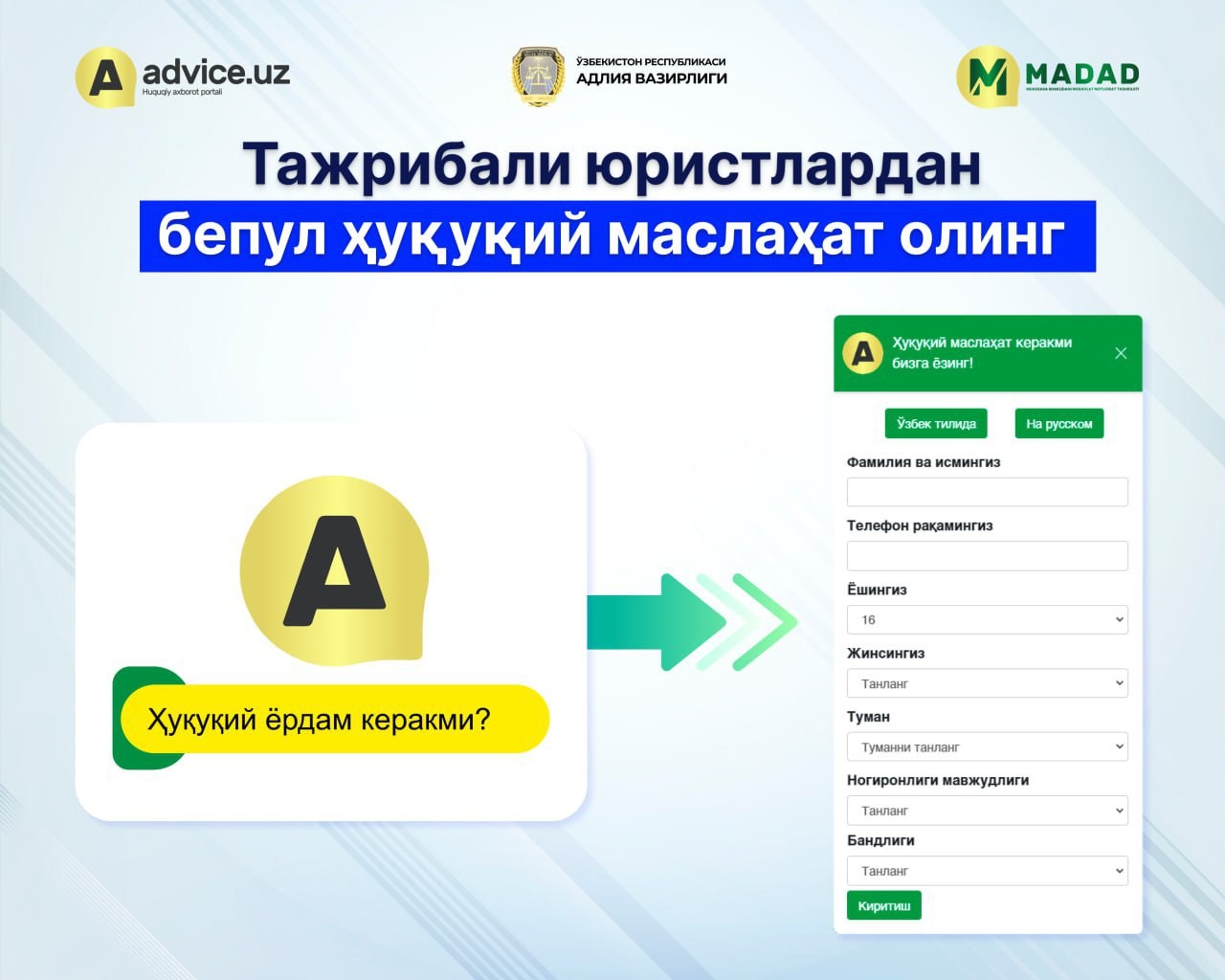 Тажрибали юристлардан бепул ҳуқуқий маслаҳат олинг!!!