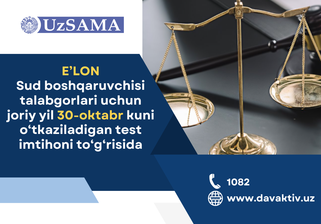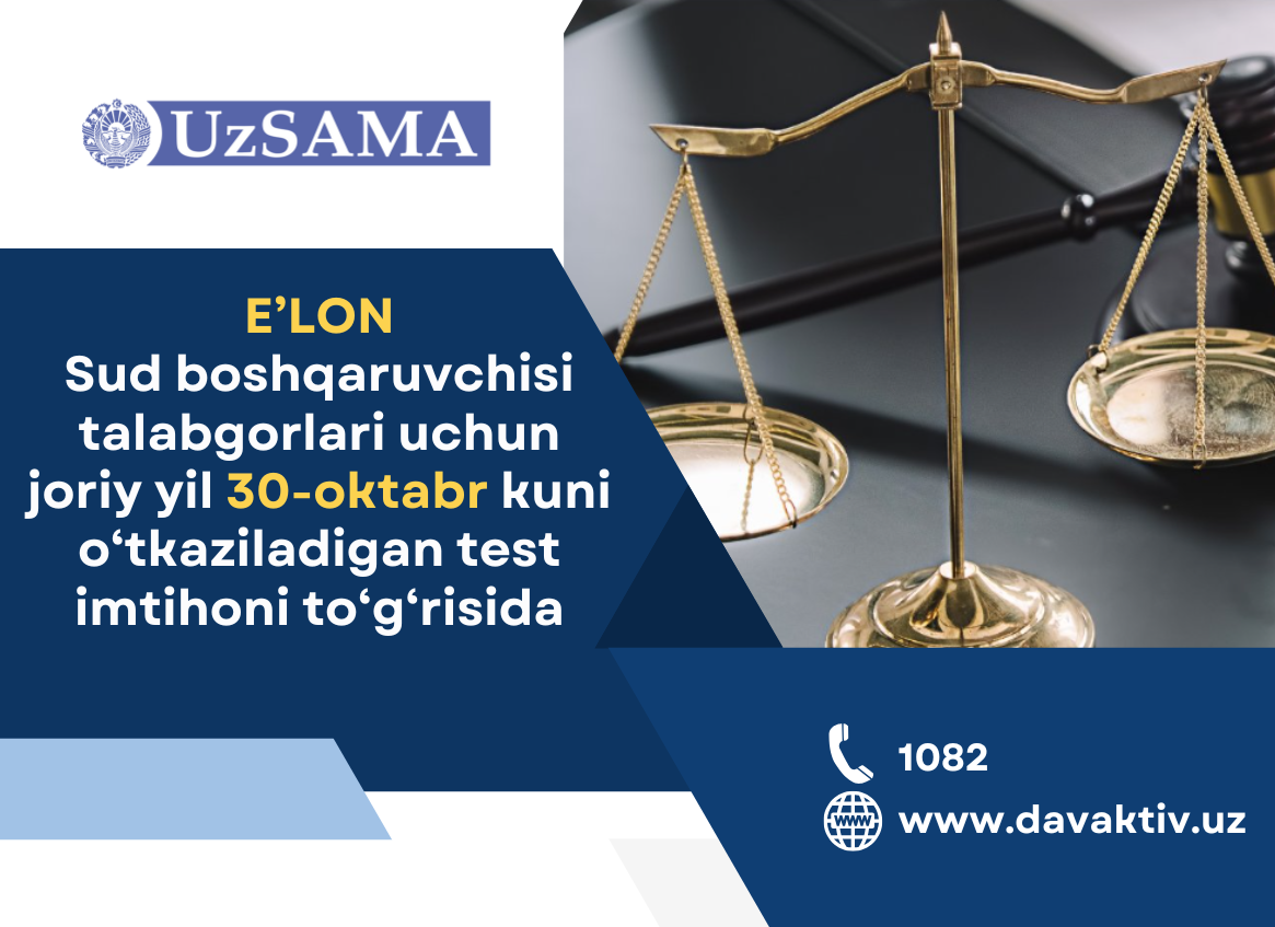 Суд бошқарувчиси талабгорлари учун жорий йил 30 октябрь куни ўтказиладиган тест …