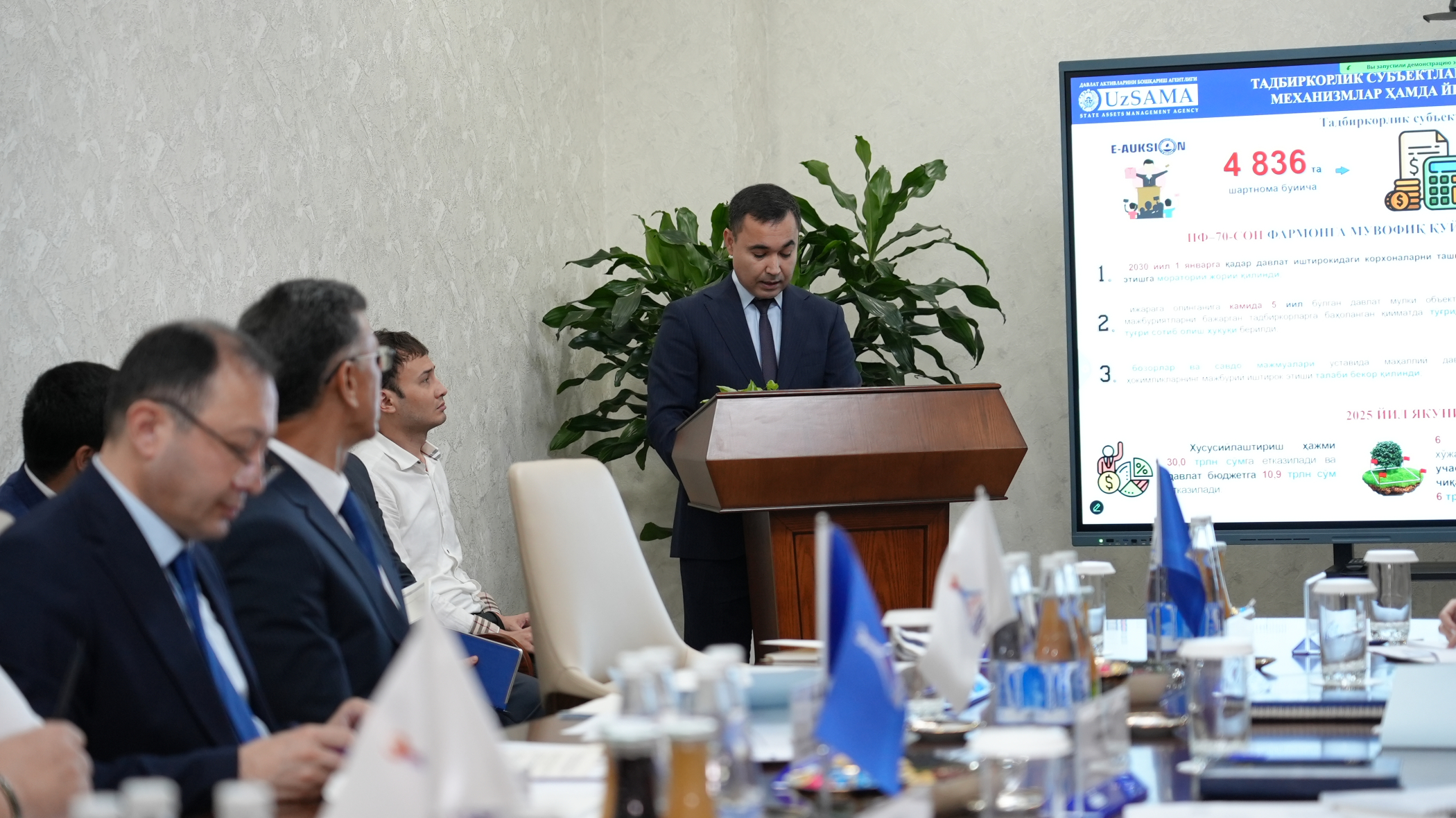 Йиғилишда рақамлаштириш жараёнлари, шаффофликни таъминлаш масалалари, давлат мулкини бошқариш ва хусусийлаштириш соҳасида амалга оширилаётган ислоҳотлар муҳокама қилинди.